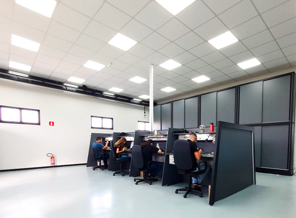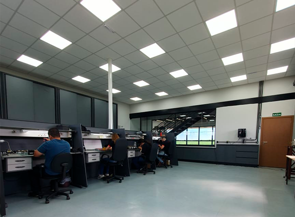 Nosso Laboratório Eletrônico conta com um espaço amplo, moderno e bem equipado, essencial para o desenvolvimento de produtos inovadores e de alta qualidade.